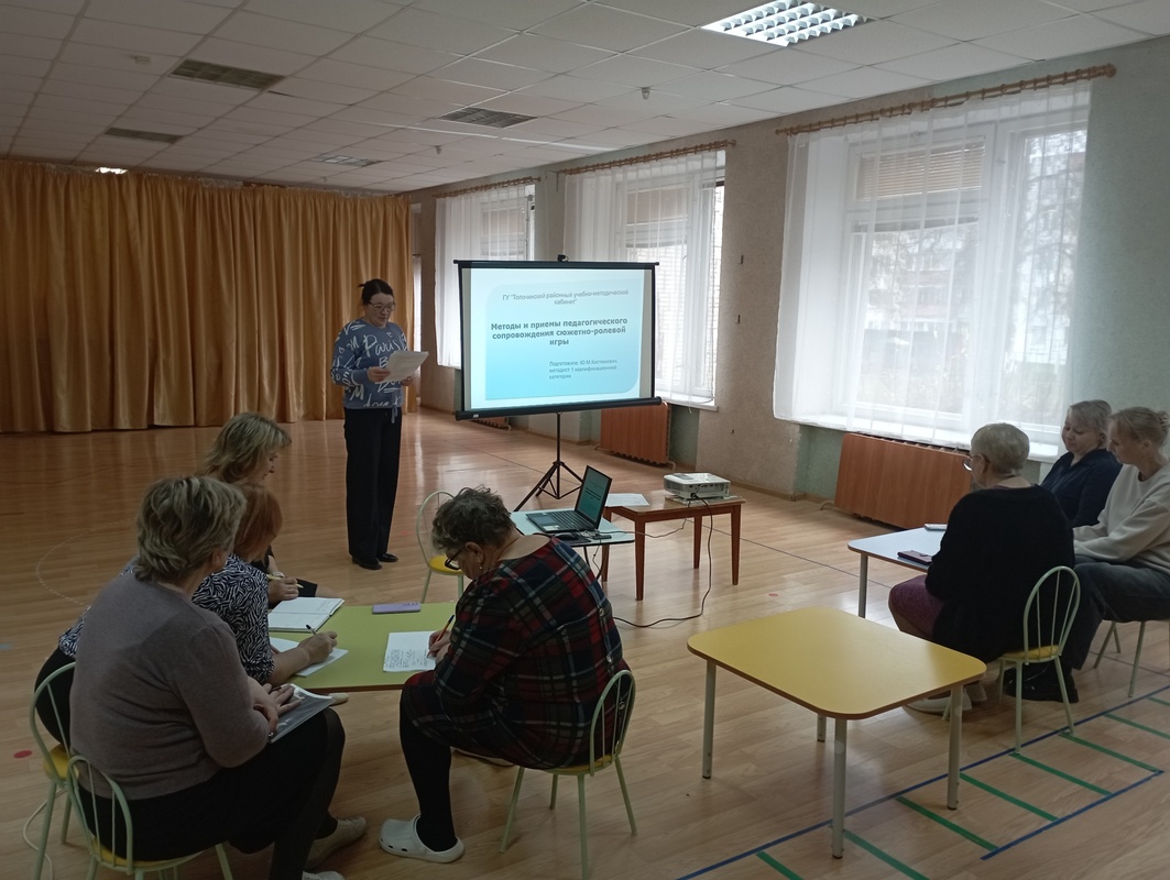 13.11.2025 г. в нашем учреждении образования в рамках Единого методического дня (согласно Концепции развития системы дошкольного образования Республики Беларусь до 2035 года) прошел мастер-класс (интерактивное занятие) «Методы и приемы педагогического сопровождения сюжетно-ролевой игры» для воспитателей дошкольного образования. В ходе мероприятия педагоги актуализировали знания по планированию, организации и проведению сюжетно-ролевой игры в разных возрастных группах.